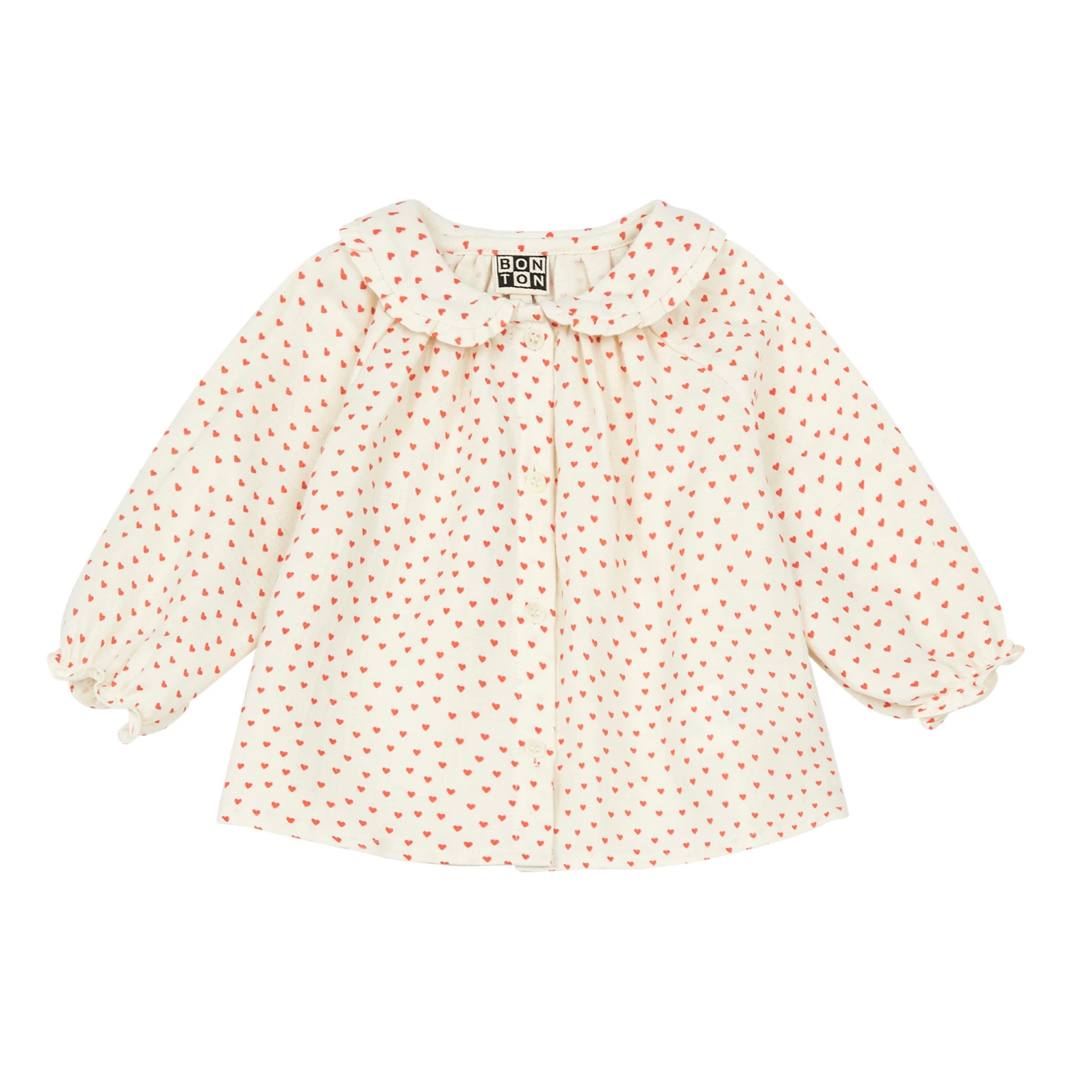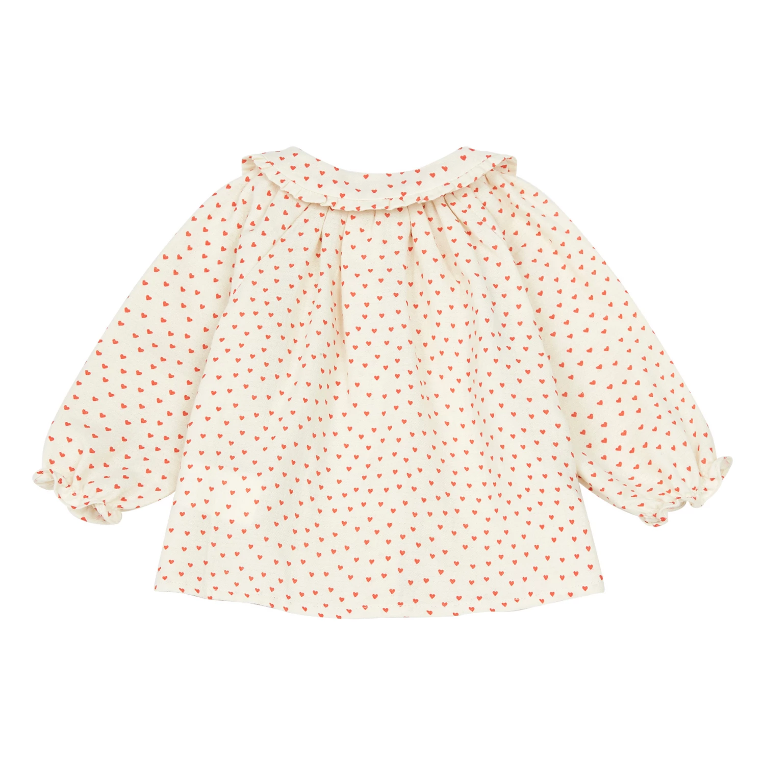 - Soft, Long sleeves, Raglan sleeve, Elastic cuffs, Frill cuffs, Sewn-in brand label, Peter Pan collar, Frilled collar, Comfortable