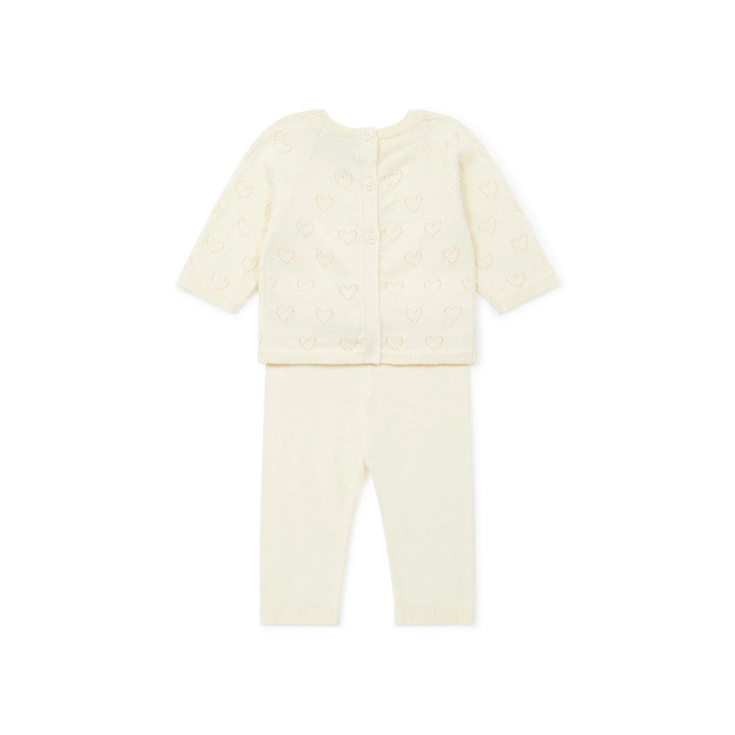 - Garment pulls on, Button(s) on the back, Plain
