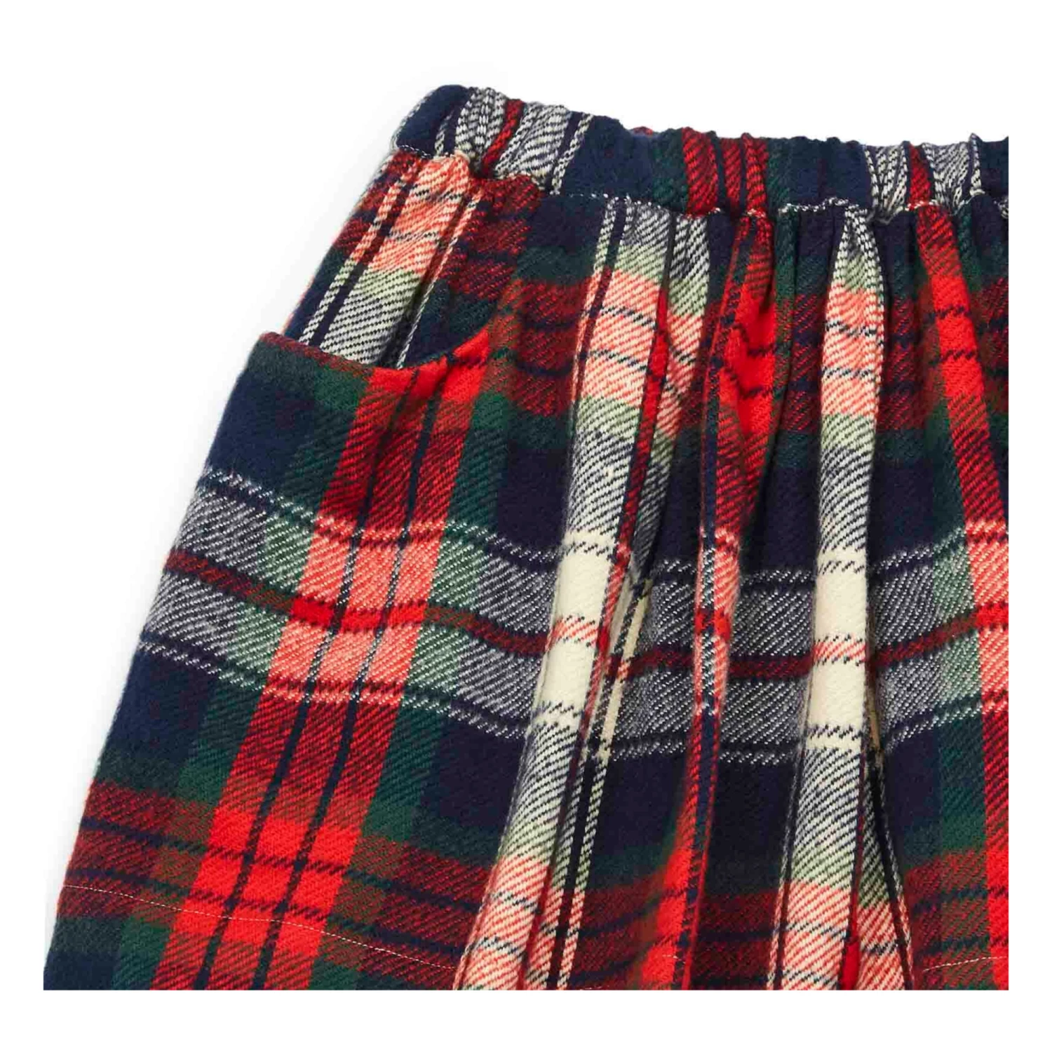 - Garment pulls on, Checked print