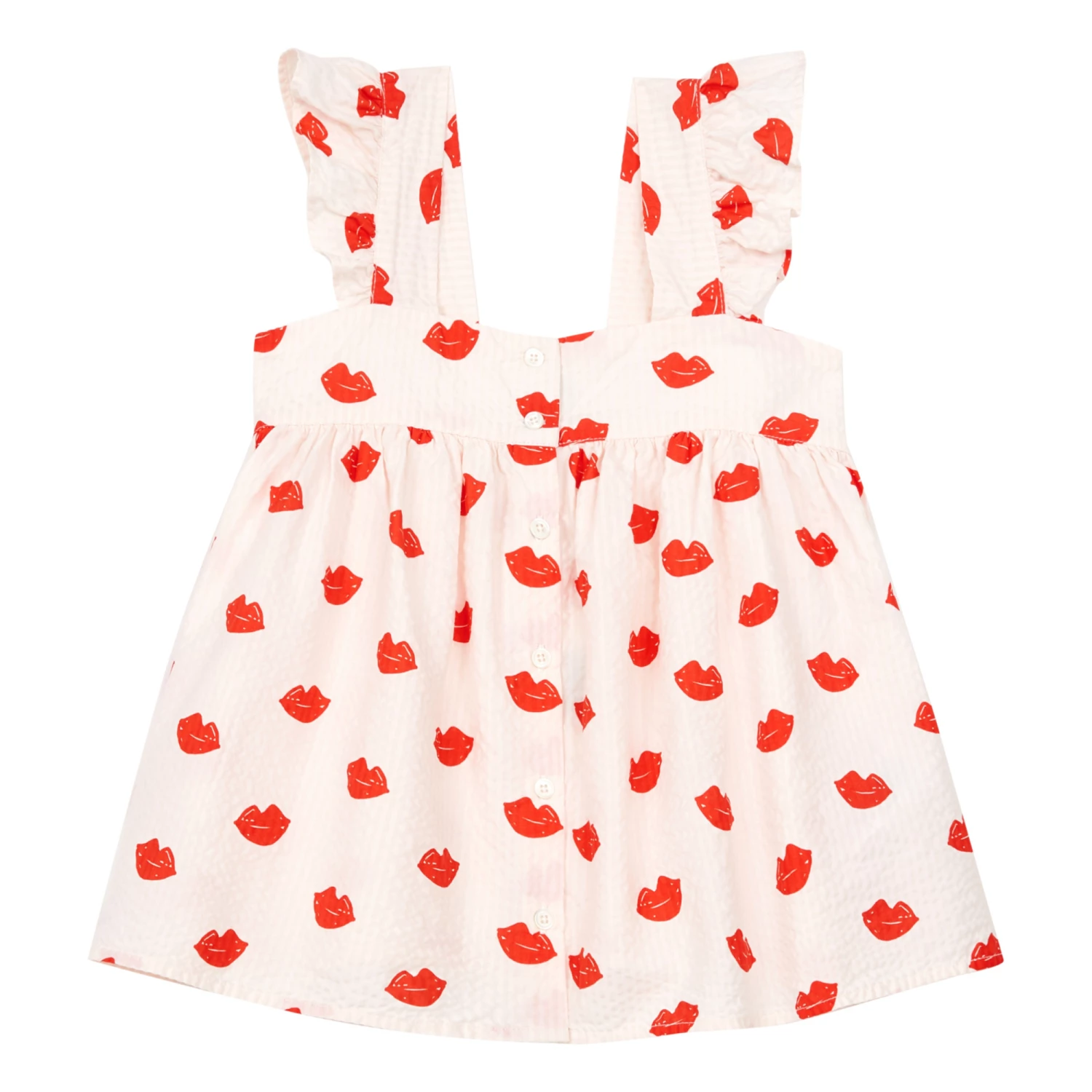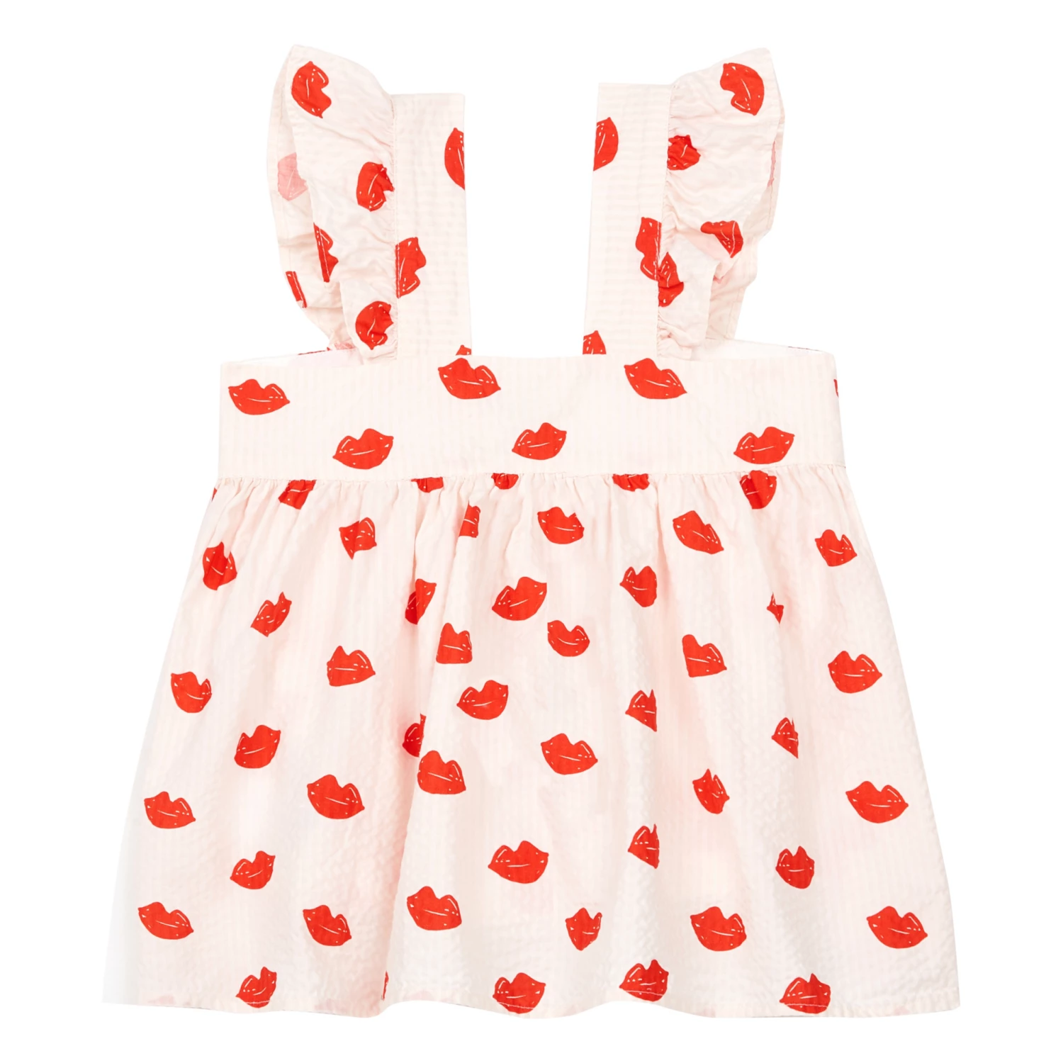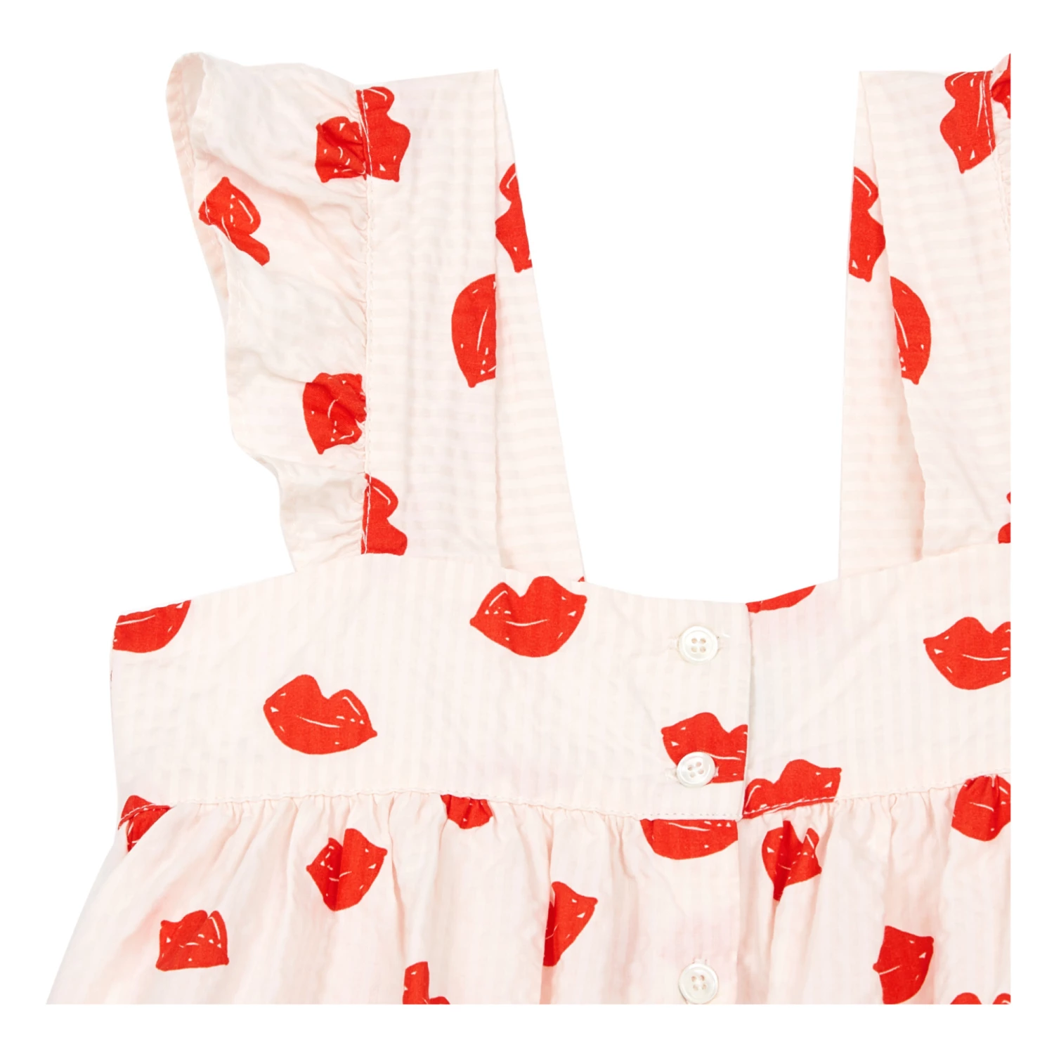- Ruffle front, Gathered at the back, Square neckline, Lightweight and comfortable, Frilled straps