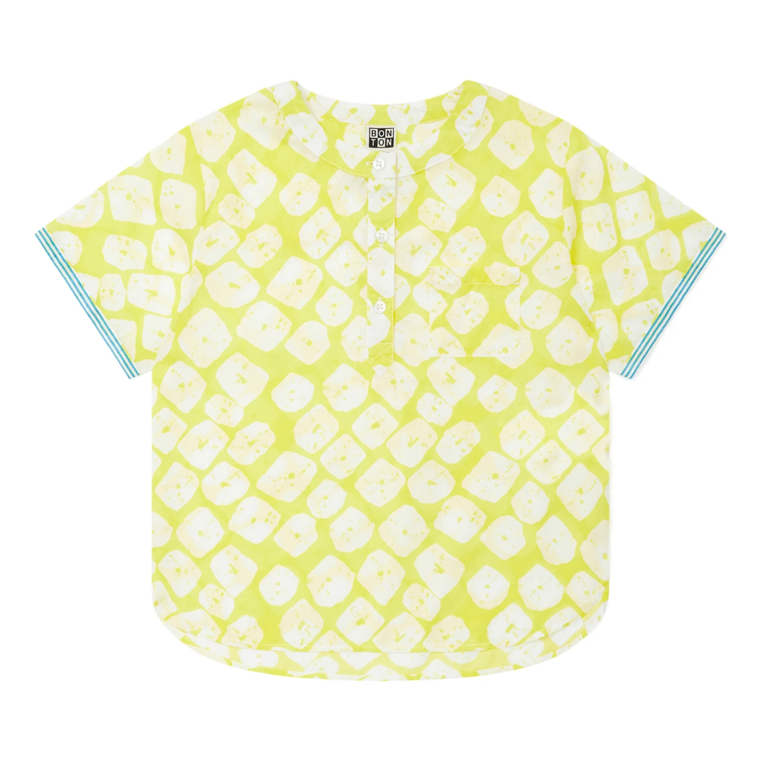 - Crew neck, Slit side(s), Lightweight, Short sleeves, Knife pleat(s), Longer at the back, Breast pocket(s), Top stitched edges, Mandarin collar