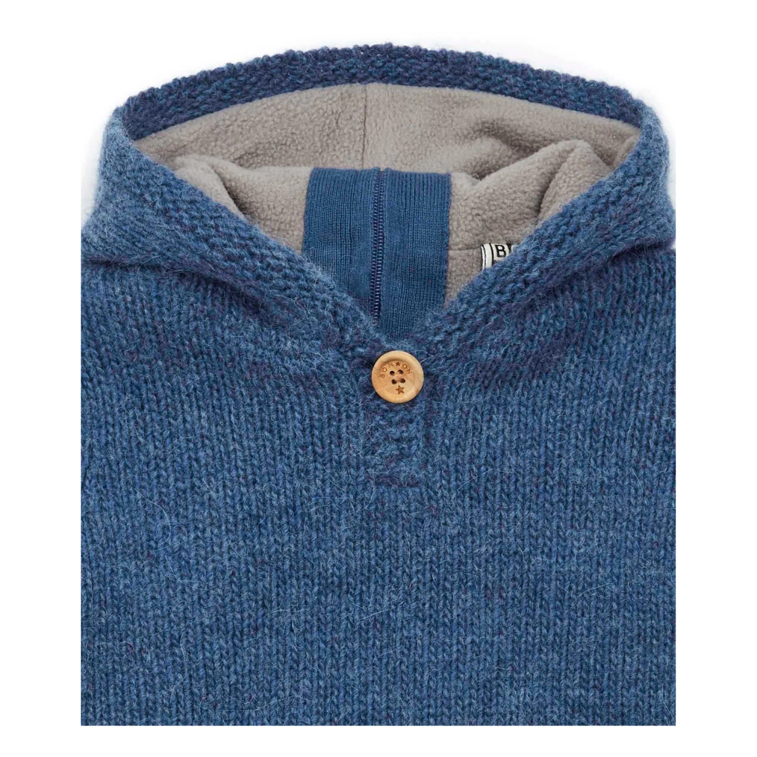 - Garment pulls on, Button(s) at the neck, Plain
