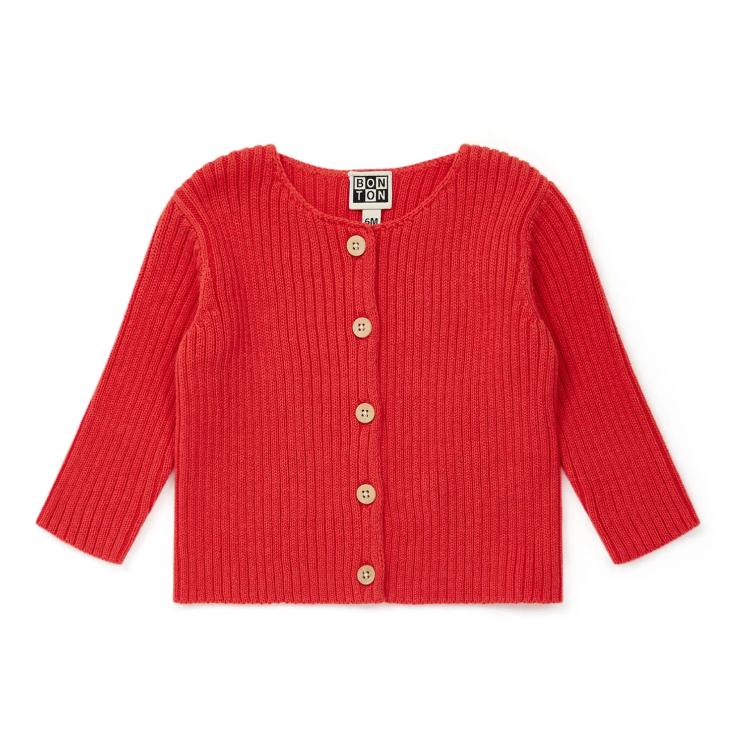 Mouton Organic Cotton Cardigan Red Bonton Fashion Baby, Children