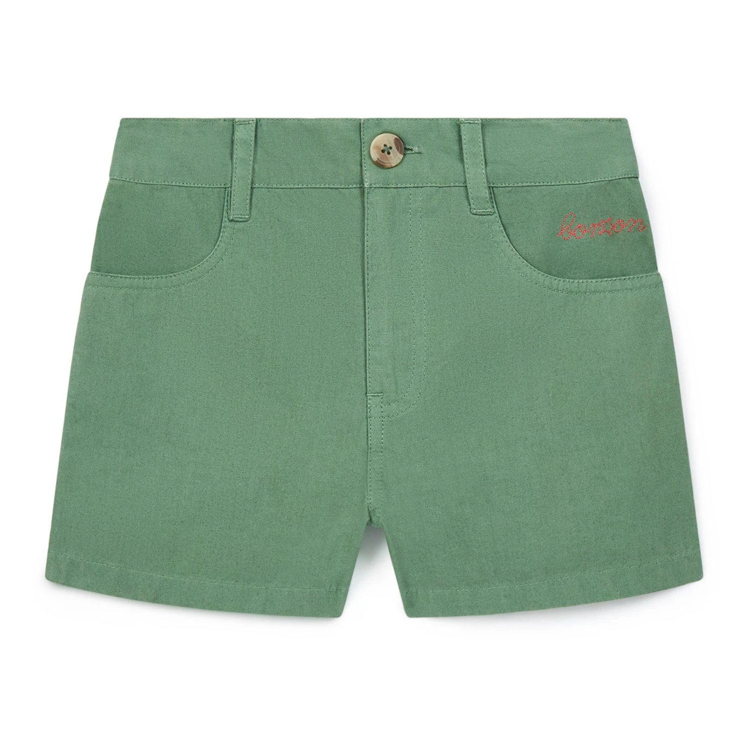 - Curved Inset Pocket, Embroidered logo, Back patch pocket(s), Top stitched edges, Belt loops at waist, Embroidery