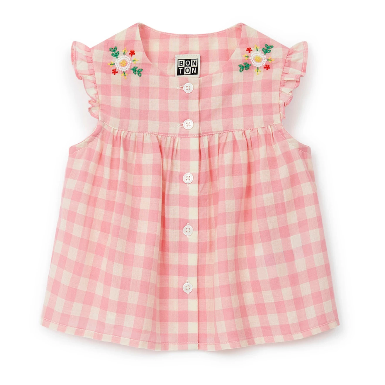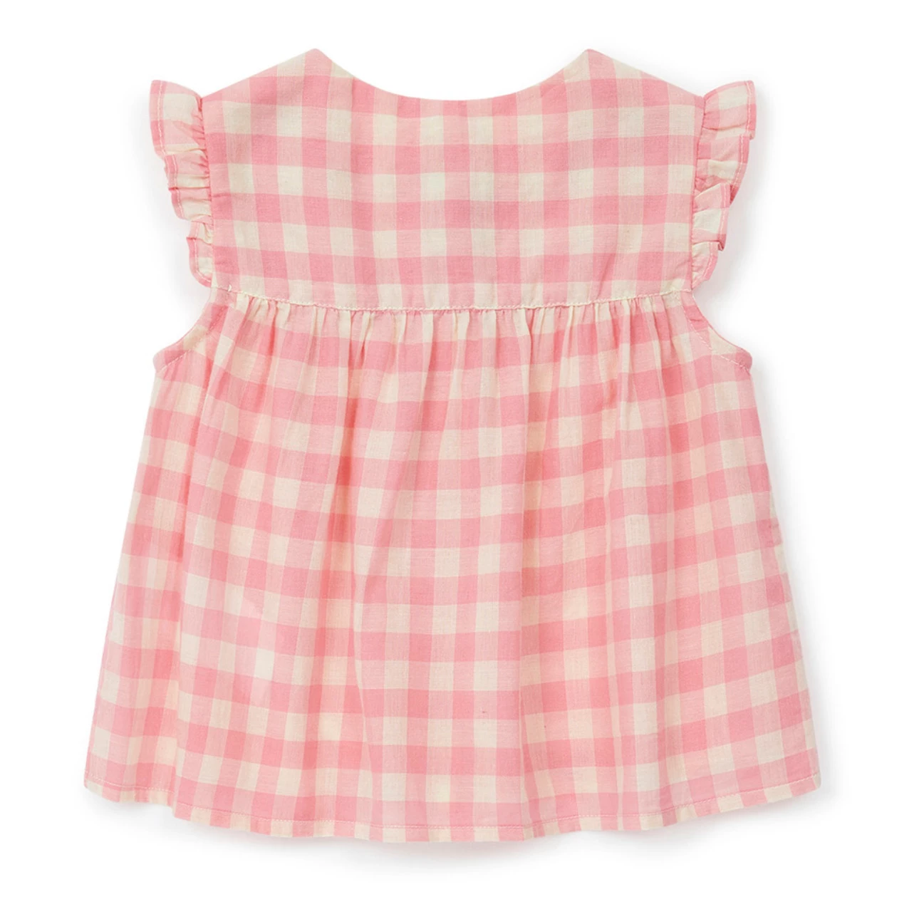 - Ruffle front, Flounce sleeve, Gathered at the back, Crew neck, Lightweight, Top stitched edges