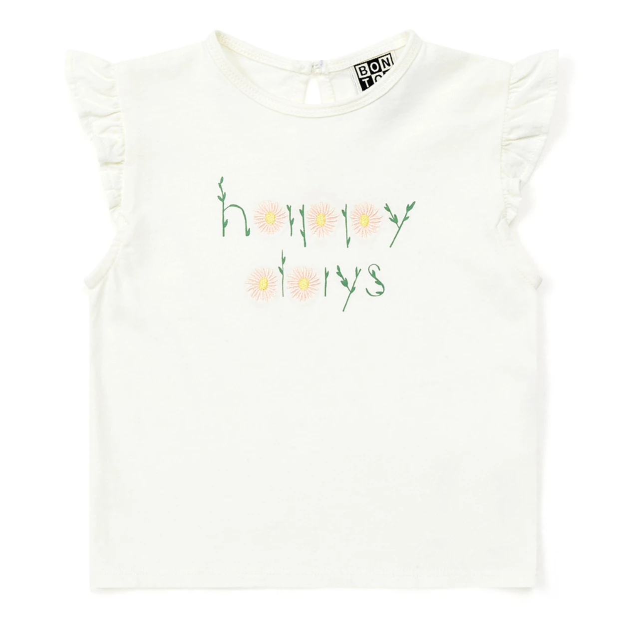- Flounce sleeve, Crew neck, Lightweight and comfortable, Short sleeves, Print on front, Top stitched edges