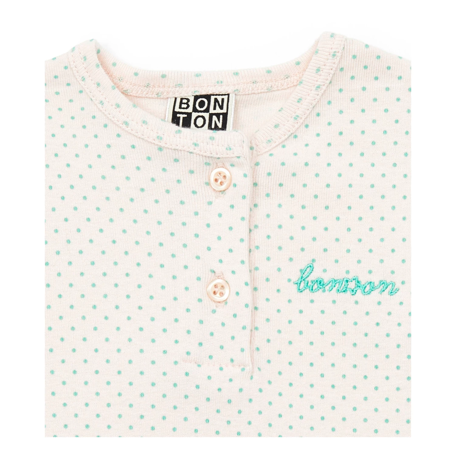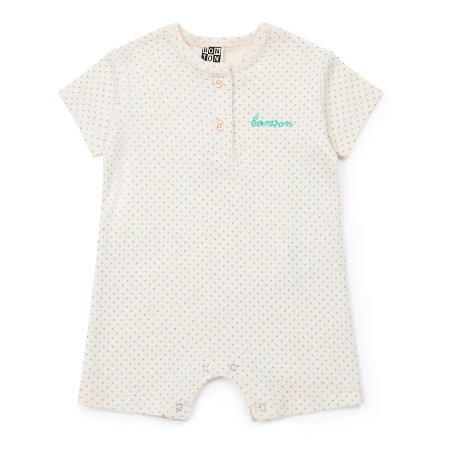 - Button(s) at the neck, Press stud(s) at the crotch for easy opening, Polka dot print