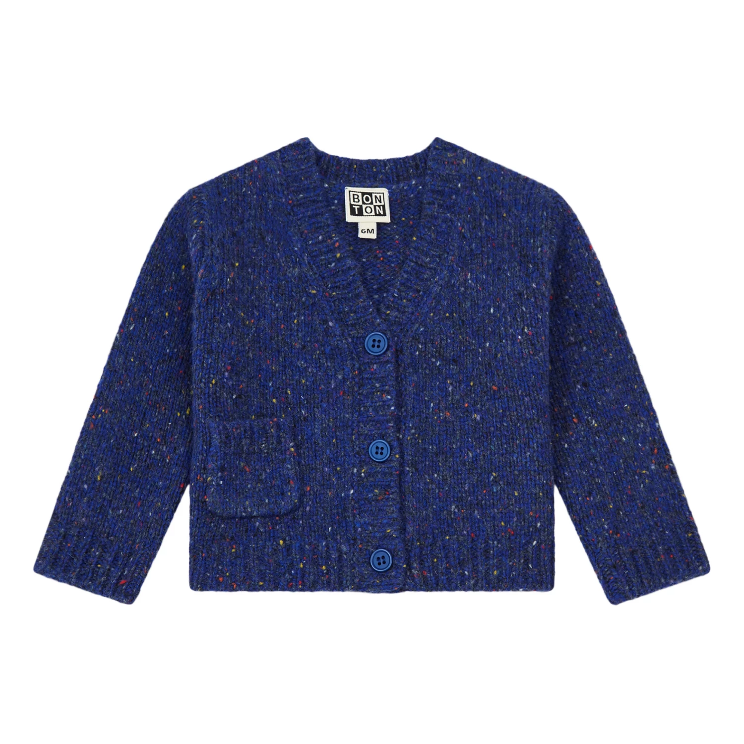 - Warm, V neck, Long sleeves, Front patch pocket(s), Ribbed edges