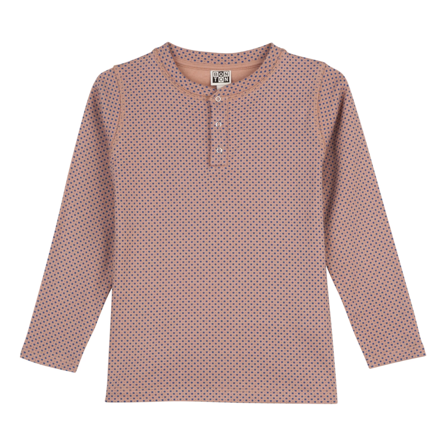 - Garment pulls on, Button(s) at the neck, Star pattern